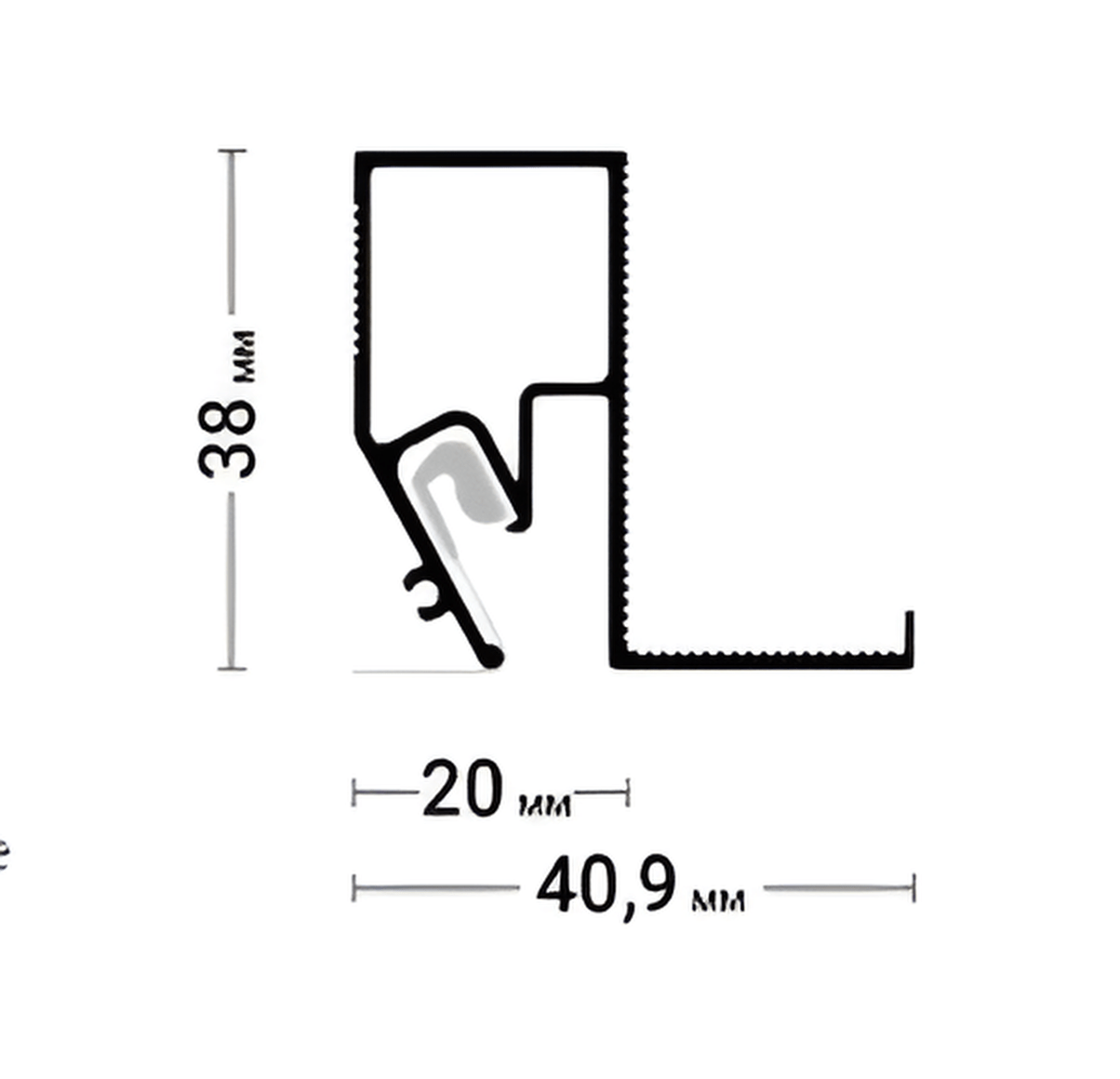 Теневой профиль Flexy BRUS 06 для натяжных потолков с гарпунной системой крепления полотна. Для обхода лестничных проемов и мансардных окон.