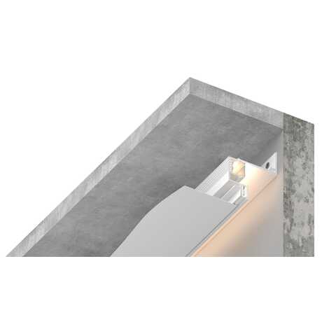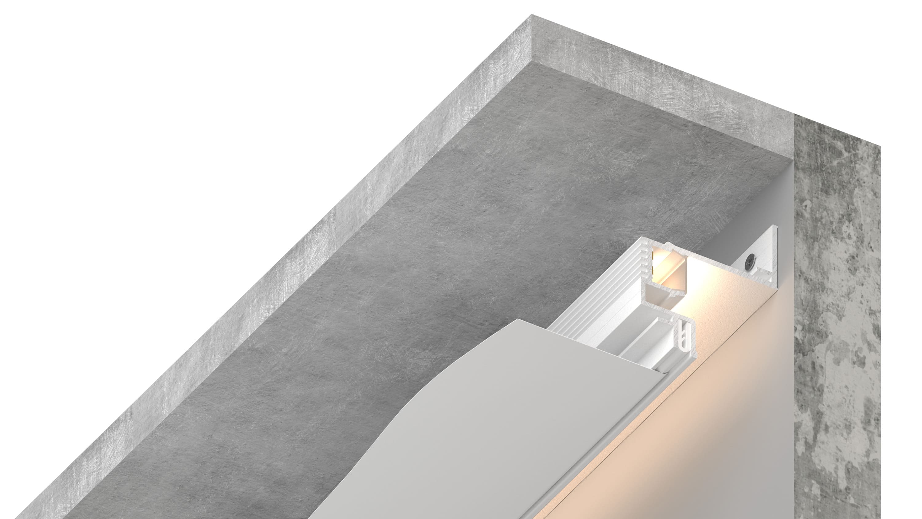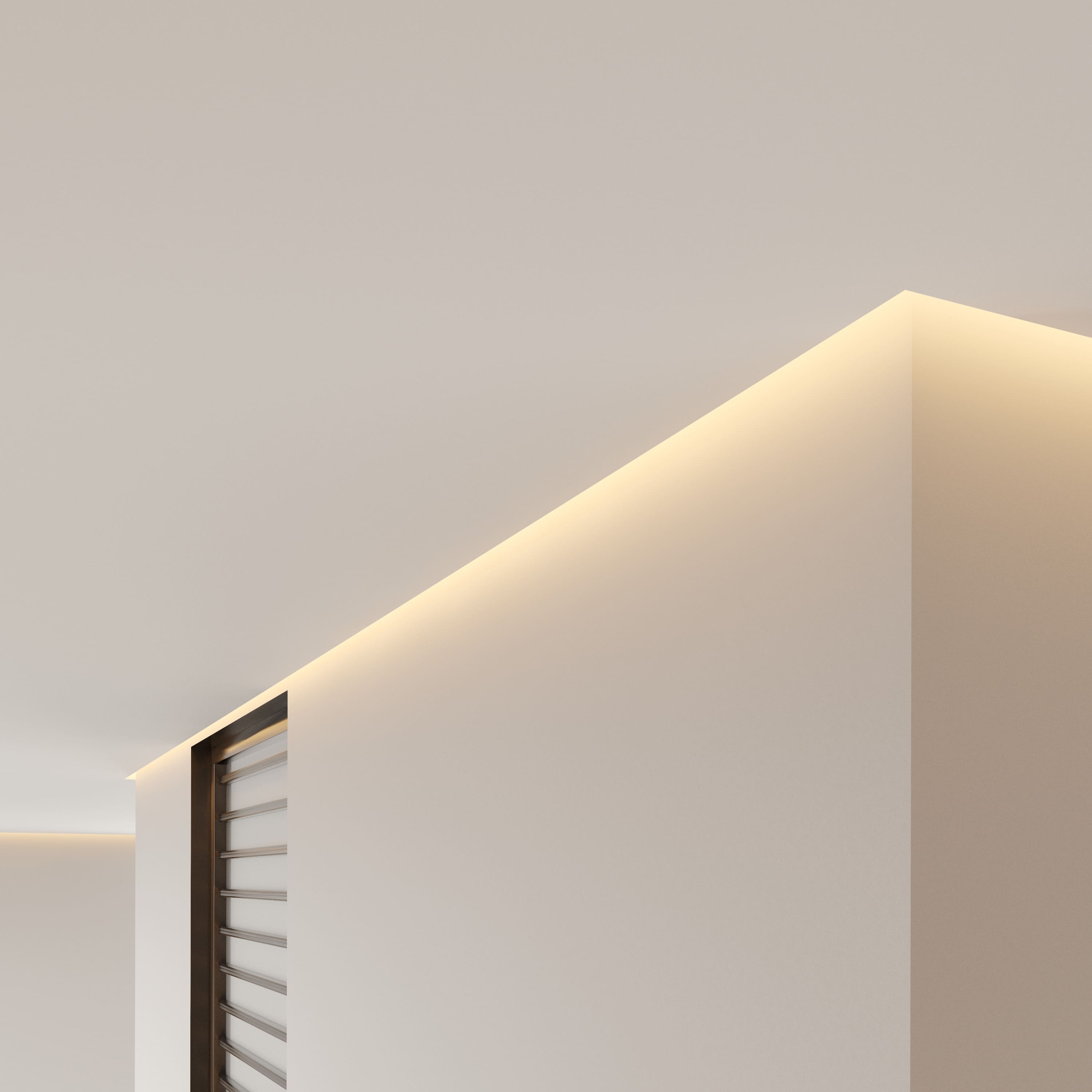 Профиль парящий SLOTT VILLAR mini - это инновационное решение для создания эффекта "парящего" потолка. Профиль позволяет добиться визуально лёгкого, невесомого потолка, который словно зависает в воздухе благодаря скрытой светодиодной подсветке. Данный профиль имеет фиксированное расстояние от стены в 25 мм, что позволяет свету мягко рассеиваться вдоль стены, не подчёркивая её неровности.