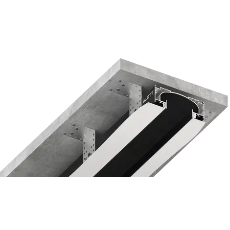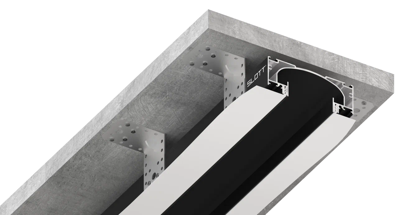 Нишевые световые линии SLOTT — система световых линий без рассеивателей и маскировочной ленты. Современное эстетическое решение для любых натяжных потолков (ПВХ и тканевых) — это демпферный потолок.