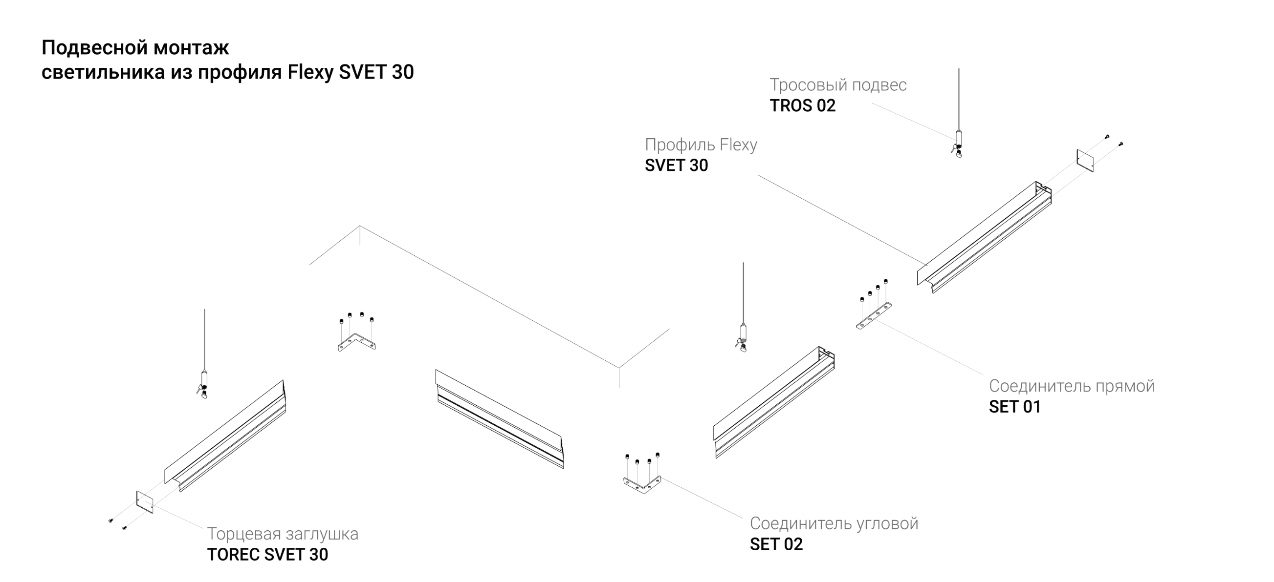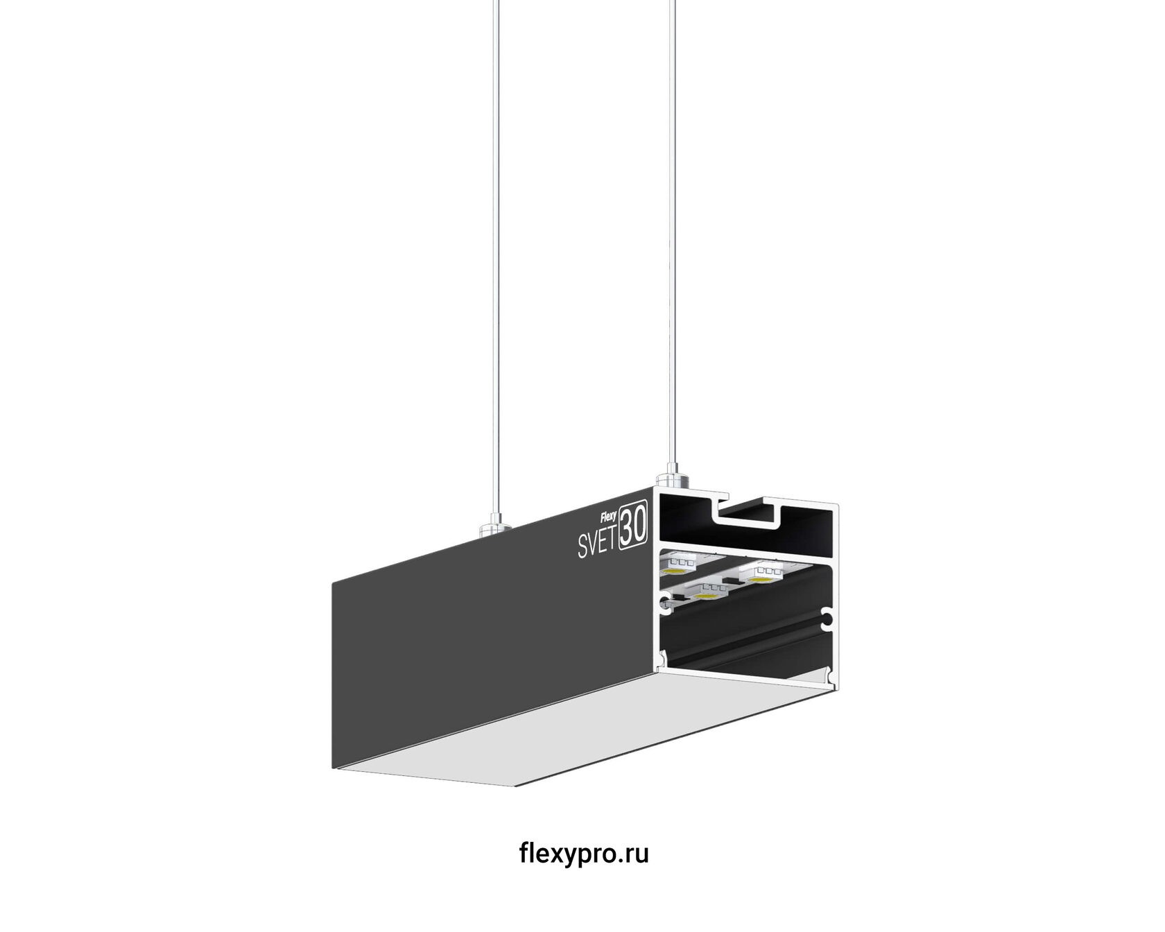 Универсальный профиль Flexy SVET 30 в цвете ЧЕРНЫЙ МУАР для изготовления накладных подвесных и встраиваемых световых линий и светильников. Не оснащен источником света!
