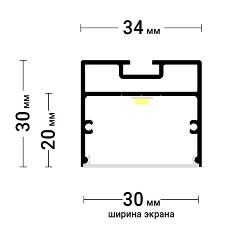 Профиль алюминиевый ПФ 2681 Свет 30мм ЧЕРНЫЙ МУАР (SVET 30), 2м (10м/уп)