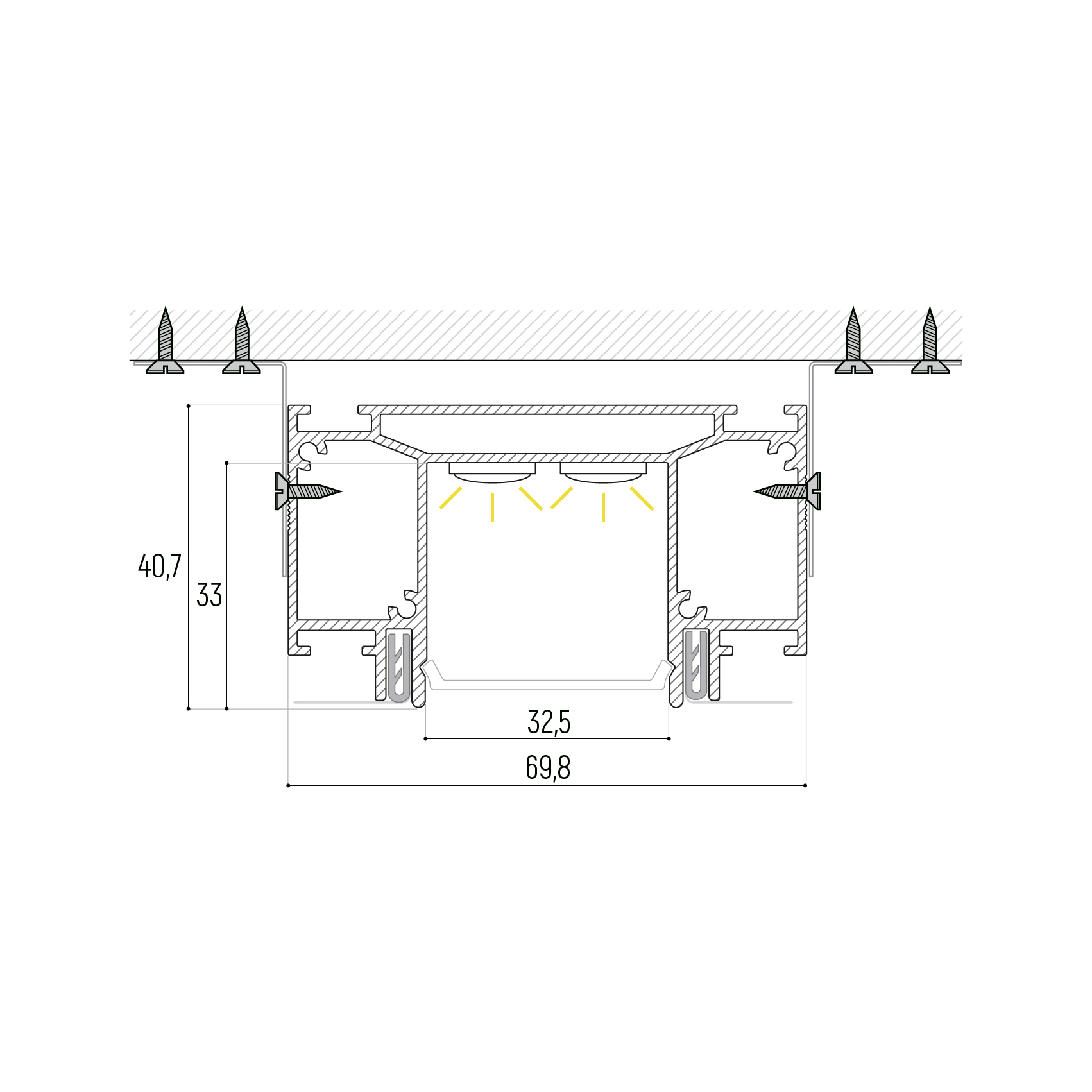В конструкции SLOTT Line используется прочный поликарбонатный рассеиватель, утопленный на 3 мм в профиль. Это делает видимую часть конструкции более объемной и интересной, а также скрывает стыки в углах, создавая чистый и законченный вид.