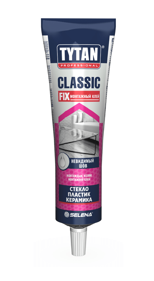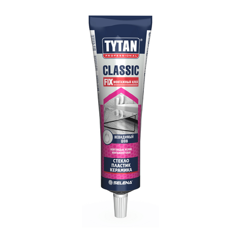 Клей Tytan Classic Fix является многоцелевым и отличается способностью склеивать такие материалы как полиэтилен и полипропилен. Шов не имеет цвета, и обладает высокими эластичными качествами.