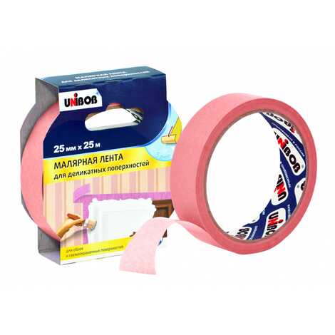 Клейкая лента малярная заказная для деликатных поверхностей UNIBOB 25мм х 25м (инд.упаковка)