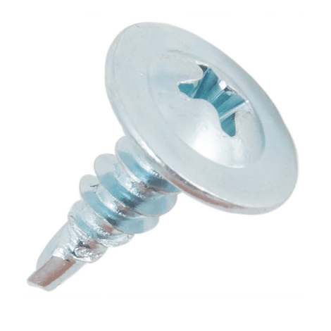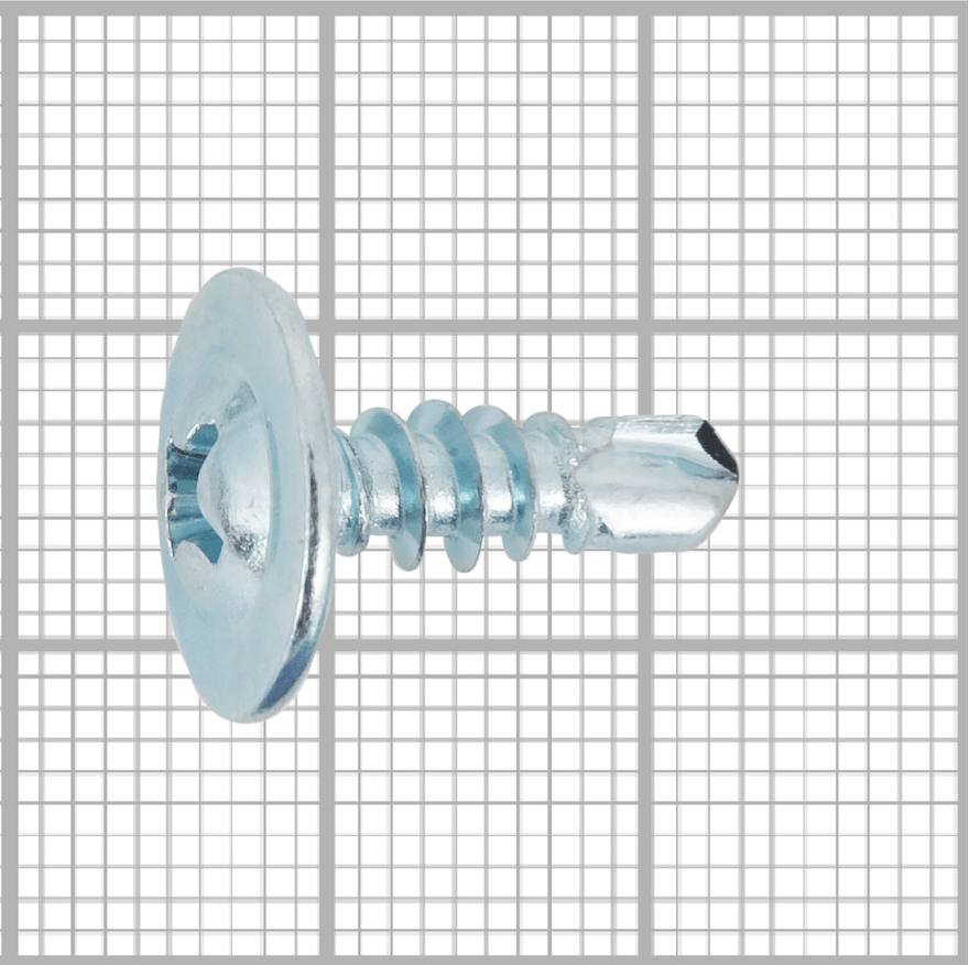 Саморез с пресшайбой и сверловидным наконечником, шляпка самореза выполнена в виде полукруглой головки на которую напресованна плоская шайба.