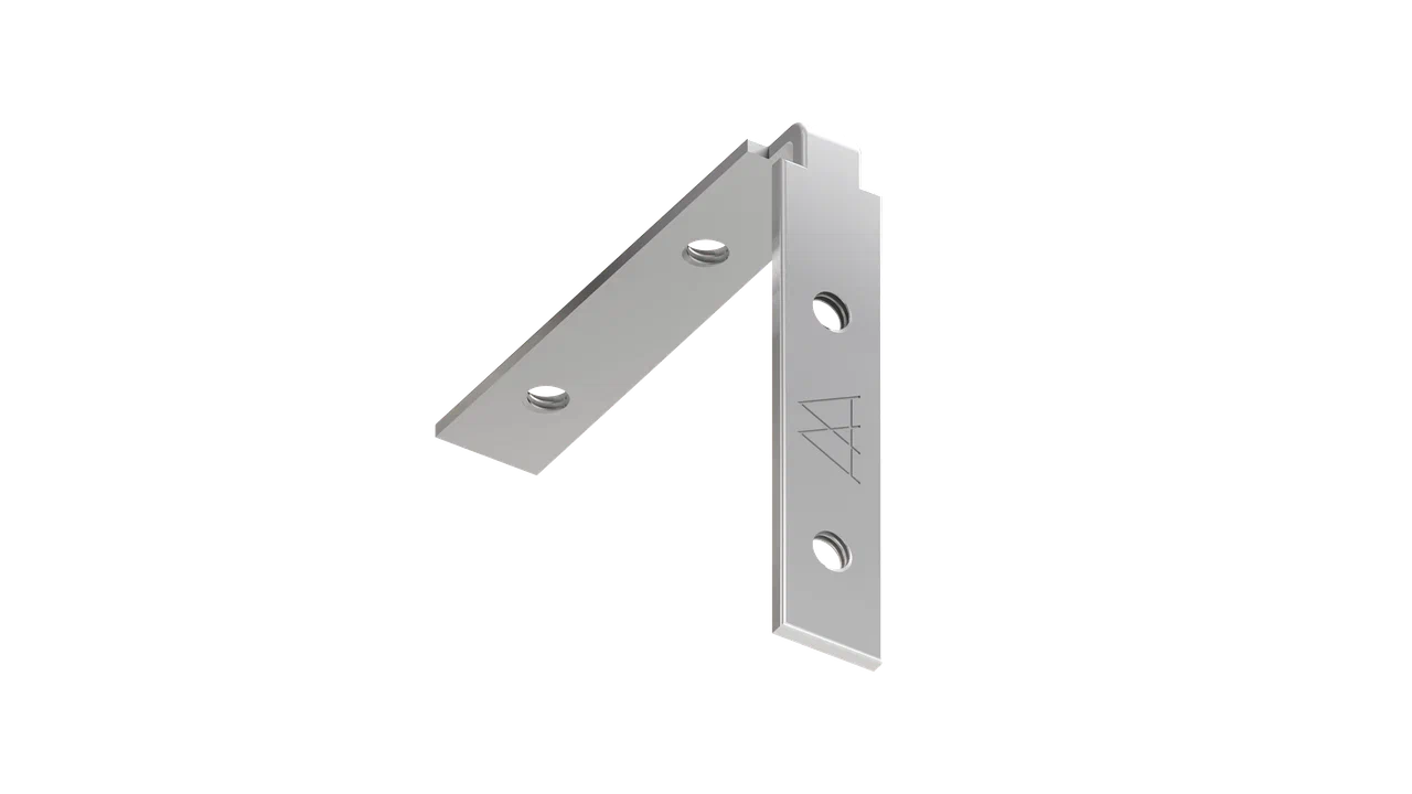 Соединитель для стыковки профилей продукции SLOTT под углом 90 градусов в вертикальной плоскости. Комплектуется винтами стопорными М5 под шестигранник в количестве 4 шт.