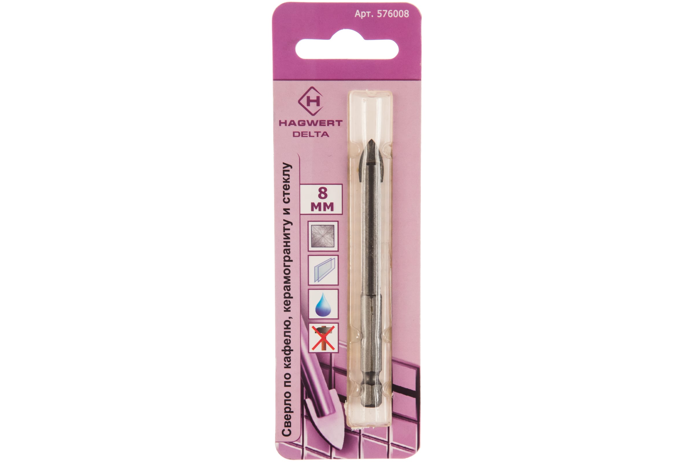 Сверло Delta HAGWERT 576008 применяется для сверления отверстий в керамической плитке 1-5 класса твёрдости, керамограните, стекле. Твердосплавная напайка изготовлена из карбид-вольфрамового сплава. Количество граней — 2. Сверление следует проводить на низких скоростях с достаточным охлаждением сверла и места сверления.