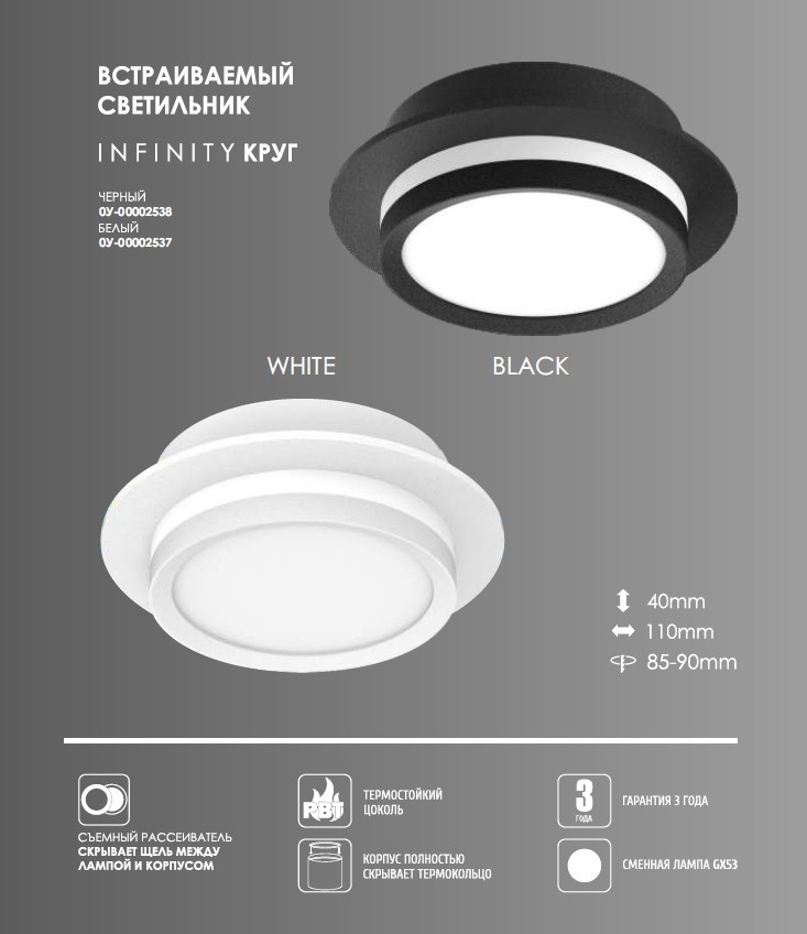 Светильник ART INFINITY КРУГ Встраиваемый Белый (под лампу GX53) 110х40