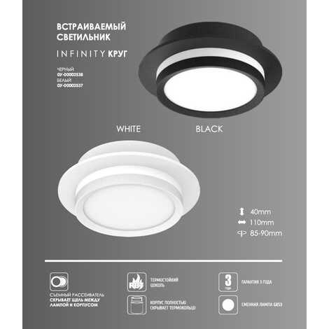 Светильник ART INFINITY КРУГ Встраиваемый Чёрный (под лампу GX53) 110х40