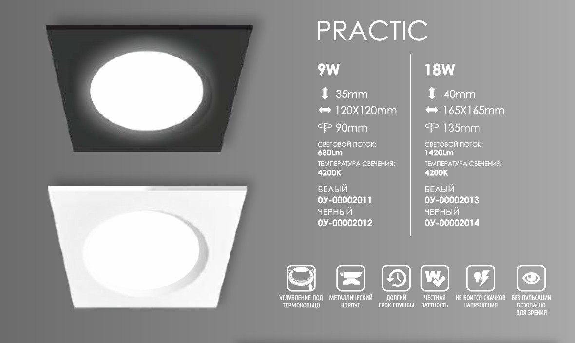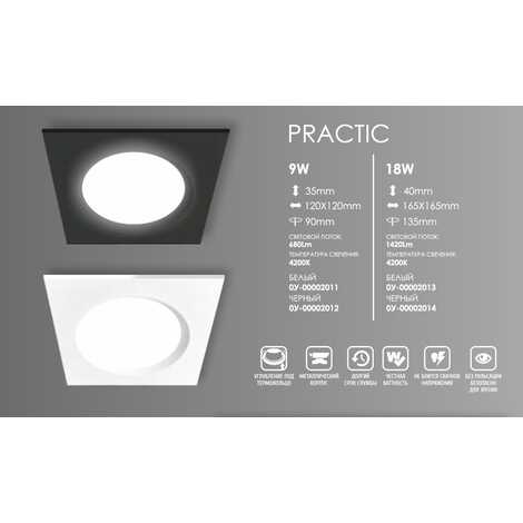 Светильник LED Панель Квадрат PRACTIC, 9W, 4200К, Чёрный, 120хD90х35