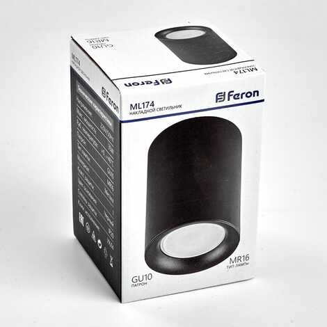 Накладной светильник Feron ML174 может используется в качестве как основного, так акцентного освещения в сфере интерьерной подсветки жилых, торговых и административных помещений, кафе и ресторанов, выставочных залов, галерей и др. Светильник оснащен патроном GU10, поэтому вы сами можете выбрать лампу для них, и таким образом управлять яркостью и температурой свечения. Также съемное фиксирующее кольцо, перекрывает контуры лампы. Благодаря этому они выглядят цельной конструкцией без лишних элементов и зазоров.