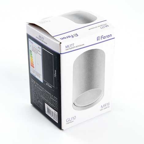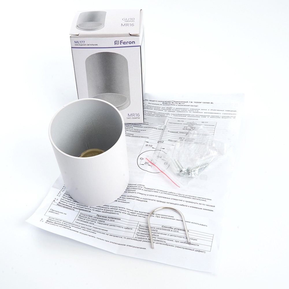 Светильник накладной под лампу, спот неповоротный (ИПО) FERON ML177, GU10 35W, 230V, IP20, цвет белый, корпус металл, 55*55*70
