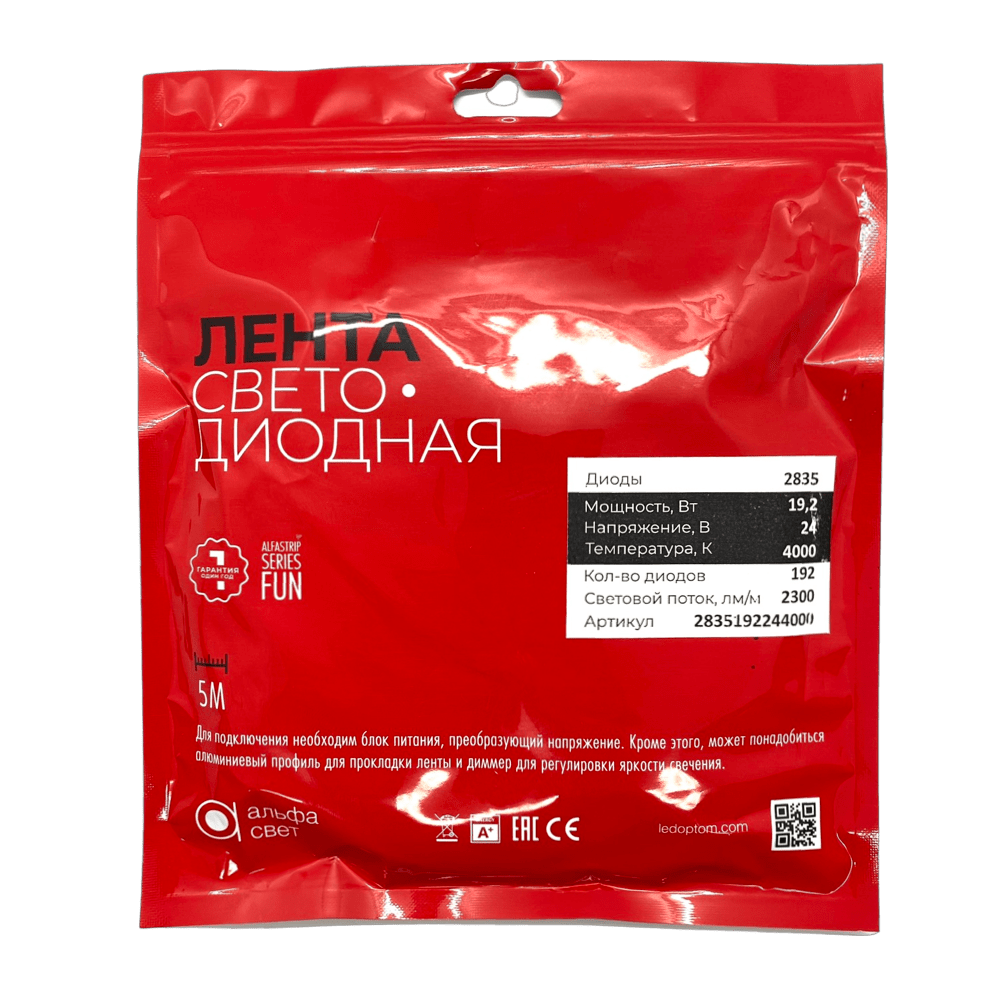 Светодиодная лента ALFA 19,2w/192 точек/4000K/2300лм (24v)