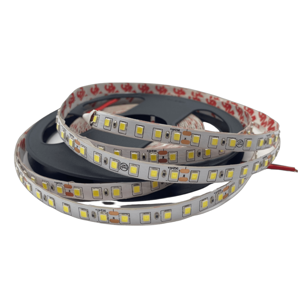 Прекрасно осветить помещение можно с помощью светодиодной ленты smd 2835 белого свечения. Неслучайно это наиболее распространенный тип диодов: их яркость часто используется как основное освещение. Плотность ленты – 120 светодиодов на один метр со световым потоком 940 Лм. Гибкая ленточная полоса – на белой самоклеящейся основе шириной 8 мм. При желании ленту можно разделить на части. Кроме того, она устойчива к перепадам температур и имеет продолжительный срок эксплуатации.