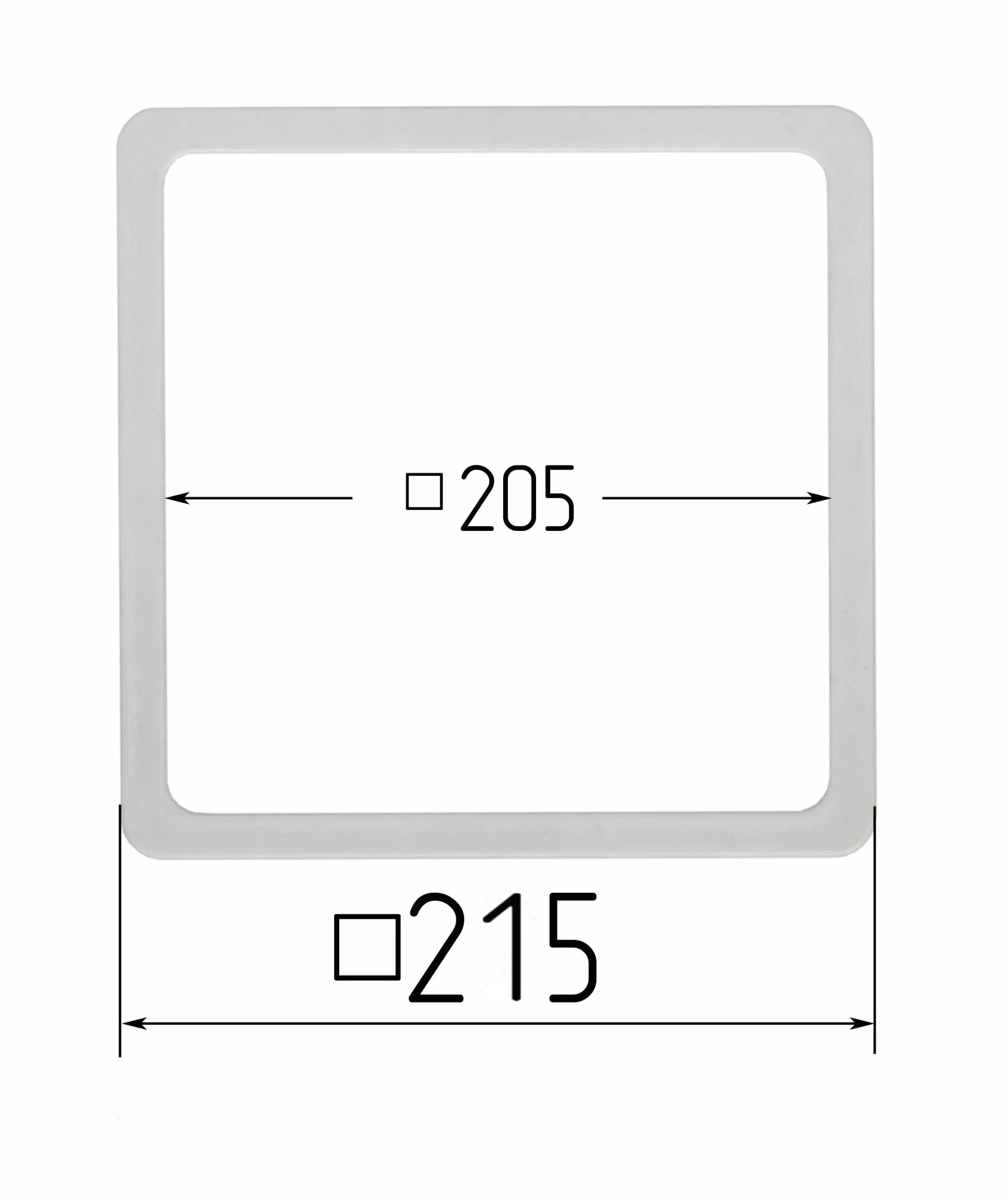 Предназначен для монтажа ультратонких светодиодных светильников с квадратным посадочным отверстием. Квадрат позволяет избежать щелей и “просветов” между основой квадратного светильника и пленкой. Во избежание повреждения пленки потолка, углы термоквадрата сделаны округлыми. Как и протекторное кольцо, он служит для усиления пленки в местах, где делается разрез, а так же для термоизоляции, обеспечивая минимальное температурное воздействие на пленку. Данное изделие может использоваться при монтаже вытяжек и воздуховодов соответствующих размеров.
