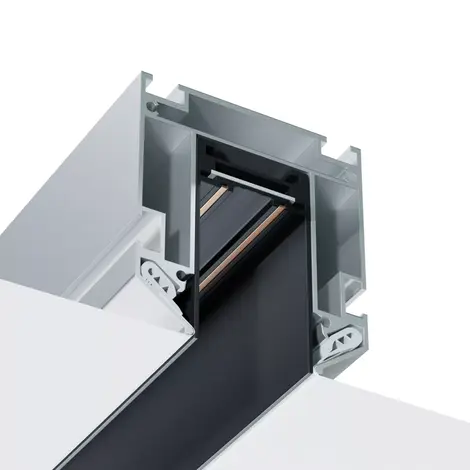 Используется трек для установки Подвесным, Накладным и Встраиваемым способом в потолки из ГКЛ или Натяжные потолки с помощью специального направляющего профиля.