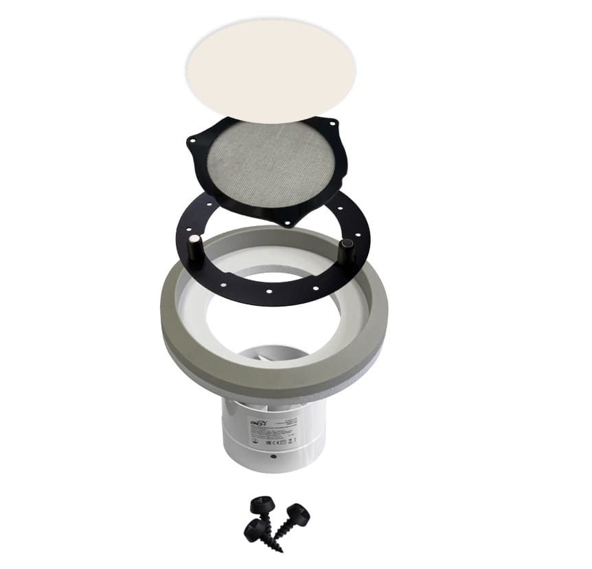 Металлическая заслонка позволяет регулировать объем воздуха, в том числе полностью перекрыть поток. Антимоскитная сетка защищает помещение от проникновения насекомых и грязи из вентиляционного канала.