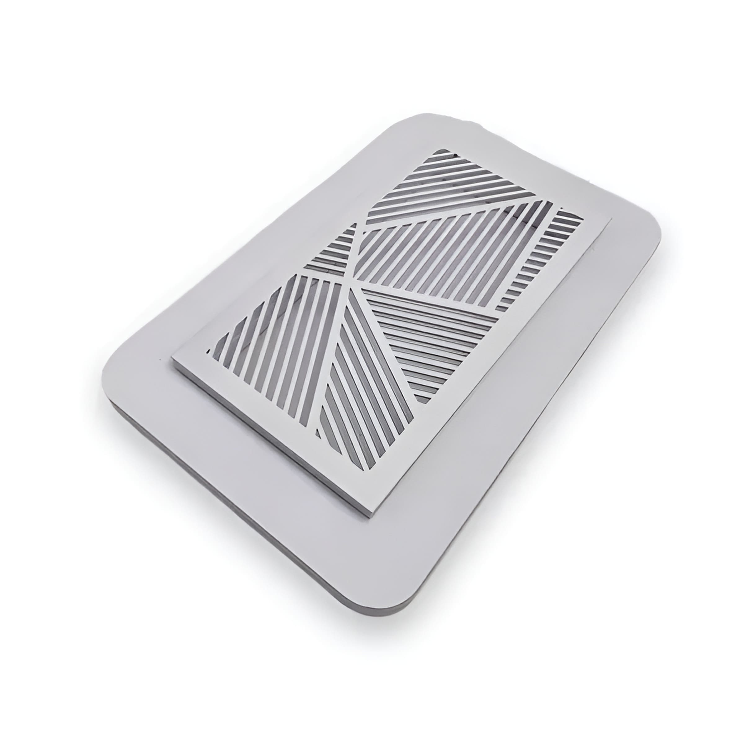 Магнитная вентиляционная решетка размером 200 мм на 100 мм. Она предназначена как для вентиляции, так и для обеспечения доступа к различным коммуникациям, расположенным за натяжным потолком (например, трансформаторы для светодиодной подсветки и т.д.). Компактные магниты обеспечивают удобство монтажа и демонтажа решетки.