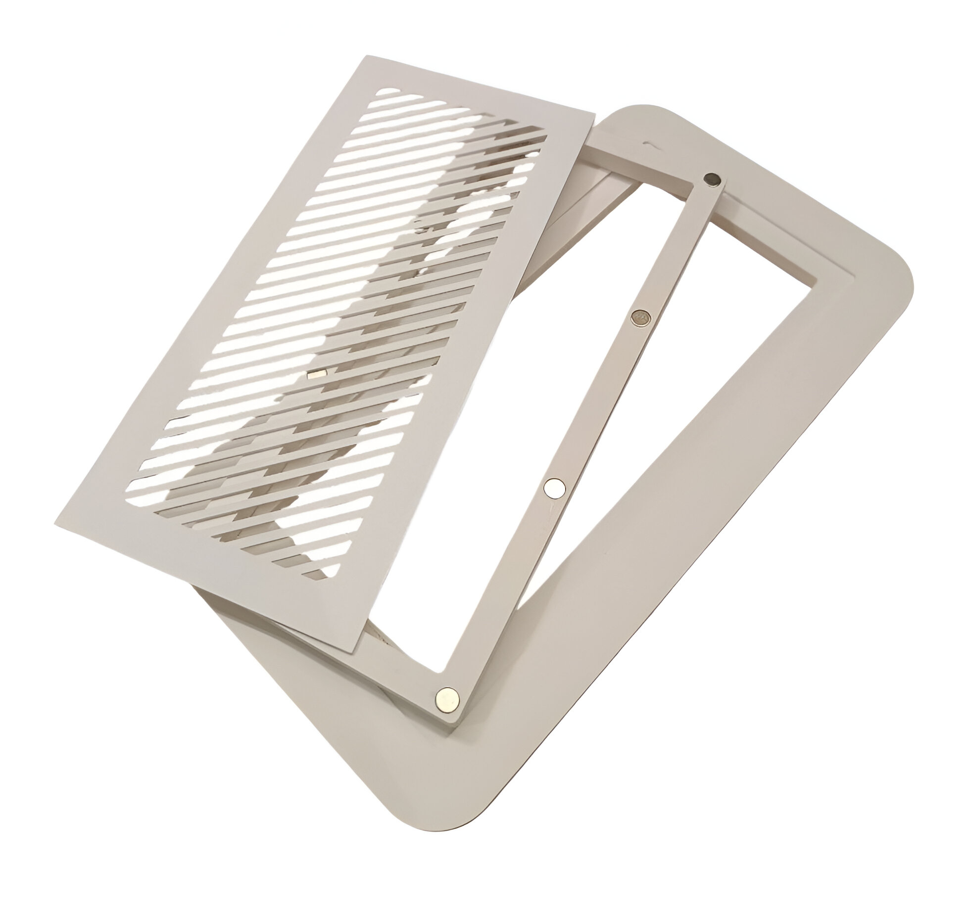 Магнитная вентиляционная решетка размером 200 мм на 80 мм. Она предназначена как для вентиляции, так и для обеспечения доступа к различным коммуникациям, расположенным за натяжным потолком (например, трансформаторы для светодиодной подсветки и т.д.). Компактные магниты обеспечивают удобство монтажа и демонтажа решетки.
