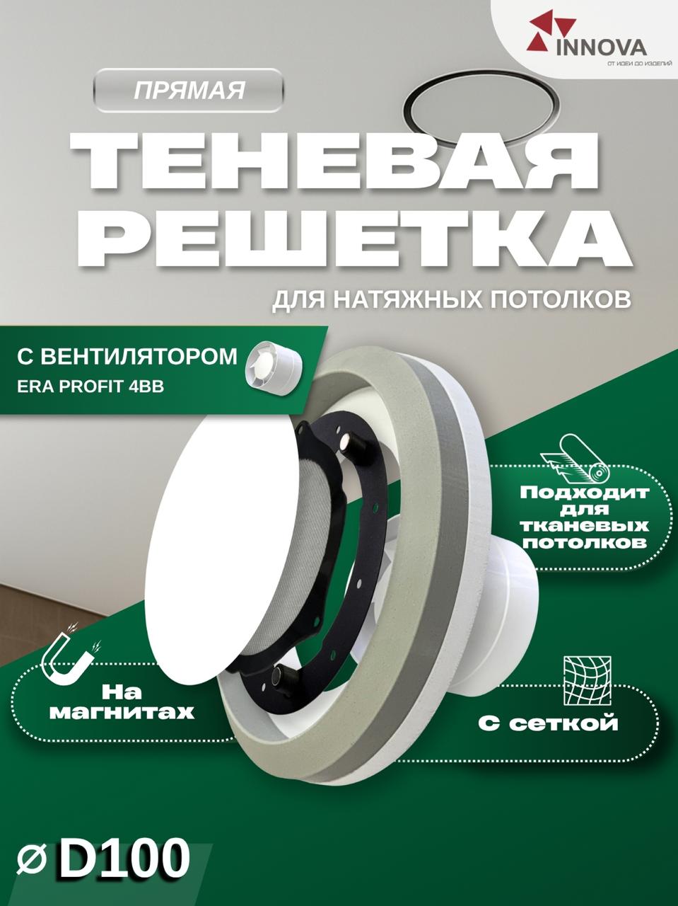 Вентилятор D100 ERA PROFIT 4ВВ, сеточка, D 103 мм отверстие, D133 мм декоративный диск , высота габарит 27мм, 3 неодимовых магнита 8х3мм.